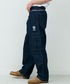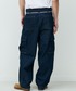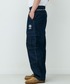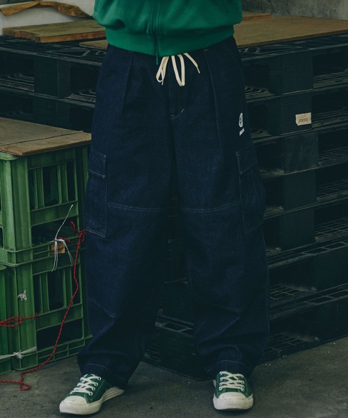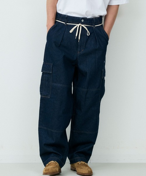 カーゴパンツをベースに、ゆとりを持たせつつ裾にかけてテーパードを効かせたシルエットは、立体的なフォルムでワイドながらもすっきりとした印象に仕上げています。