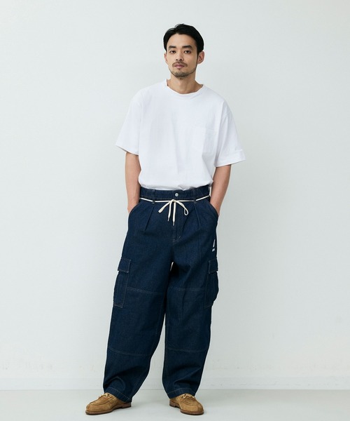 幅広いトップスと合わせやすいシルエットで、12.5オンスの岡山産デニムは見た目以上に肌馴染みのよい風合いのため穿いていくたびに身体に馴染んでいくような穿き心地です。