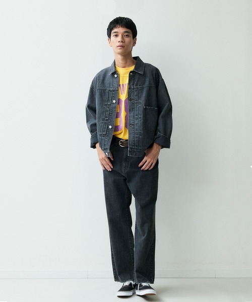 レギュラーオンスのストレートデニムを使用し、今年は経糸・横糸共に黒糸を織り込んだブラックデニムに、ポケットなど部分的にユーズド加工を施したナチュラルな表情が魅力です。