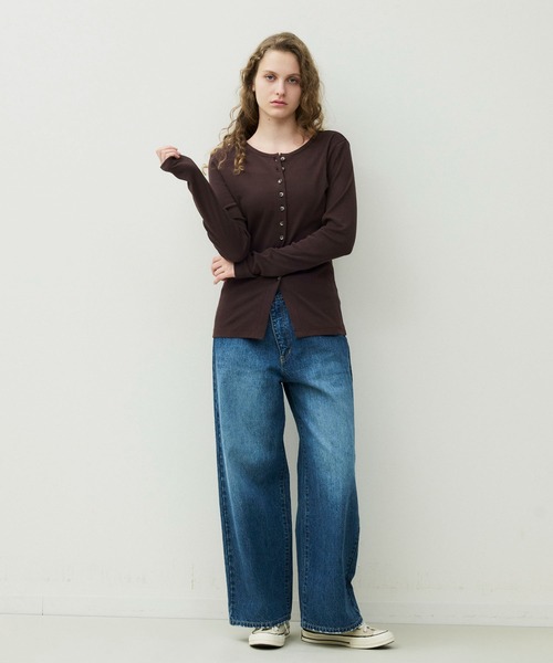 ベーシックなデニムパンツはもちろん、ワイドシルエットのボトムスとも好相性。