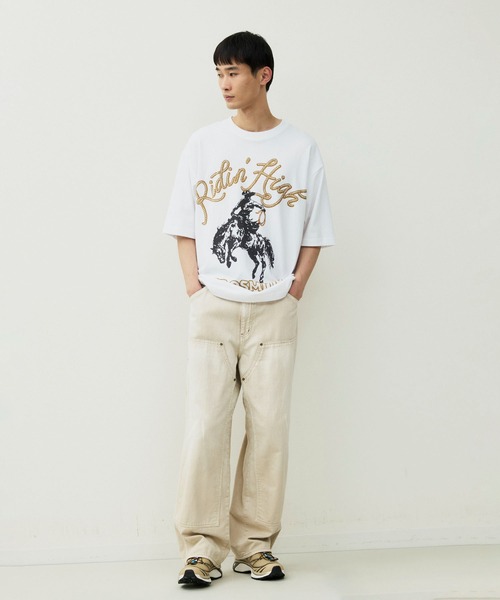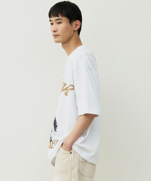 ユニセックスで着用できるゆとりのあるサイズ感で、スタイリングのアクセントになるインパクトたっぷりのデザインとなっております。