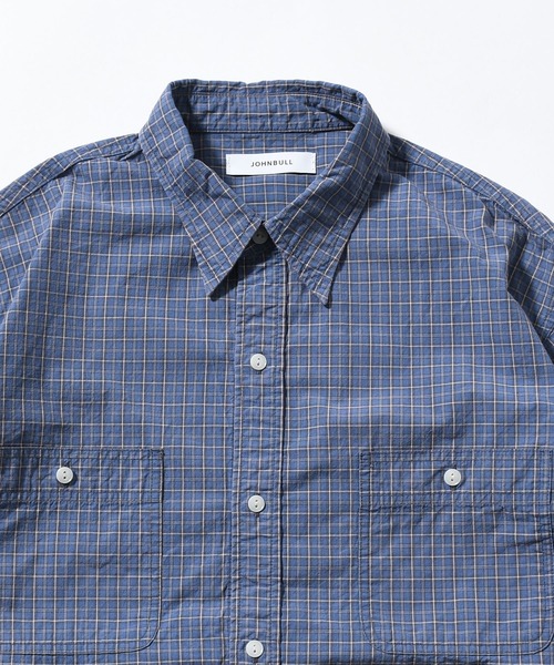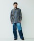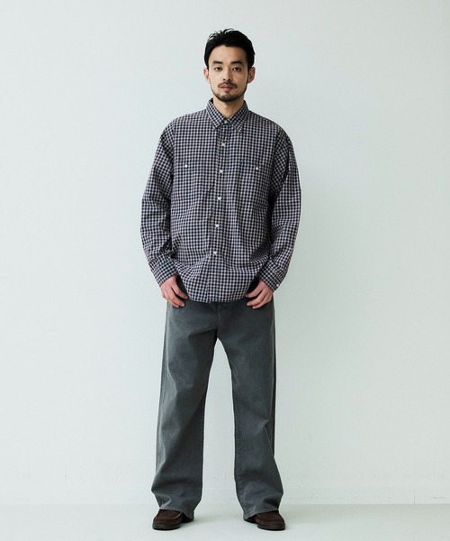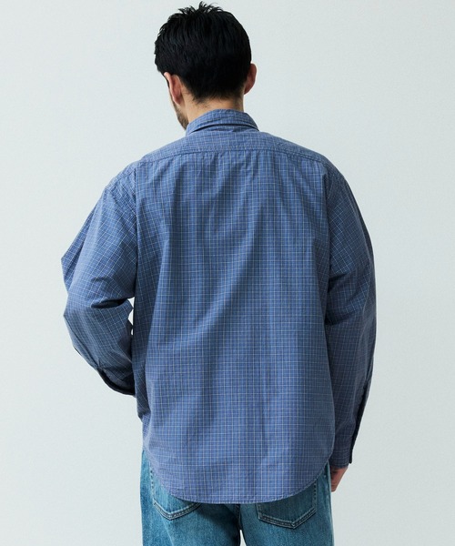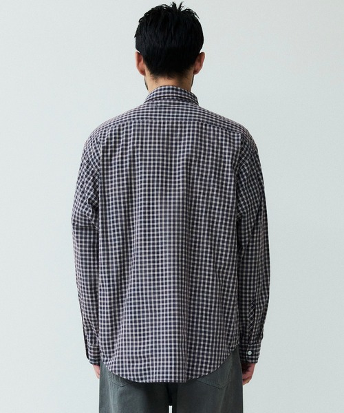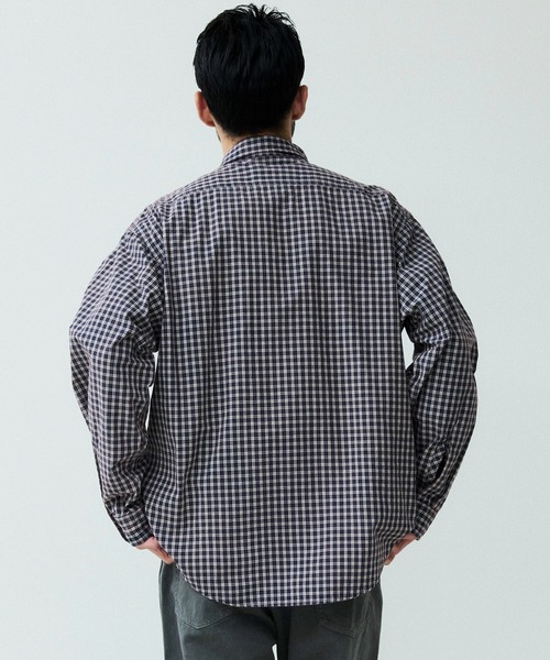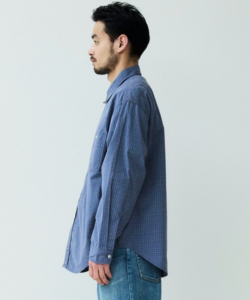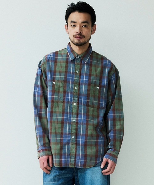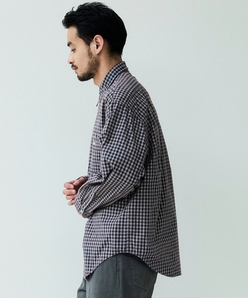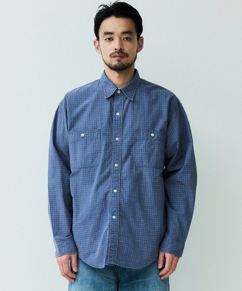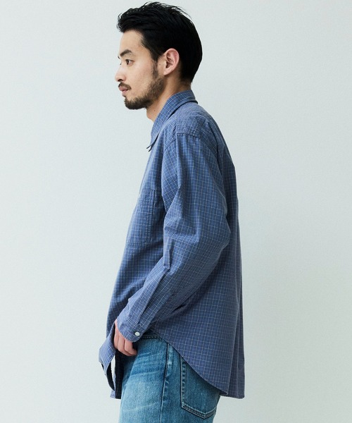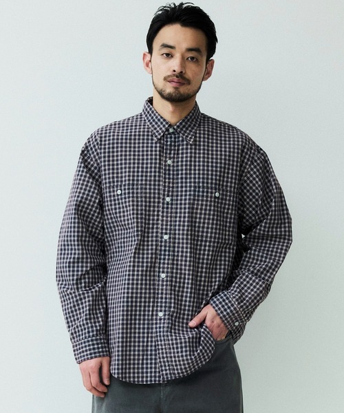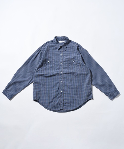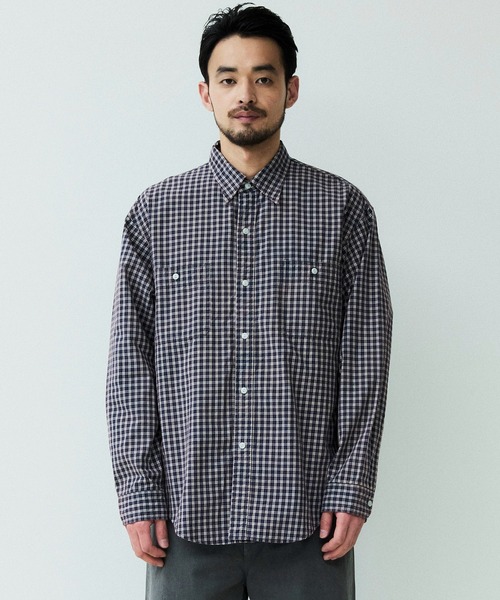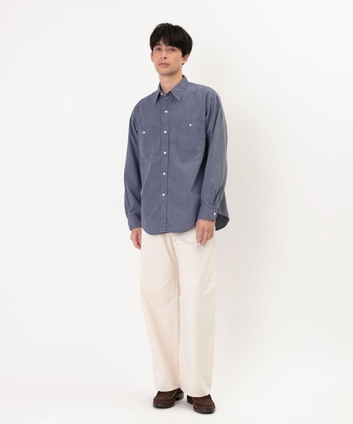 オーガニックチェック柄生地を使用したロングスリーブワークシャツ。