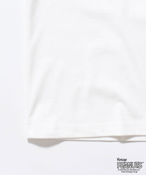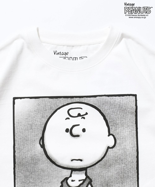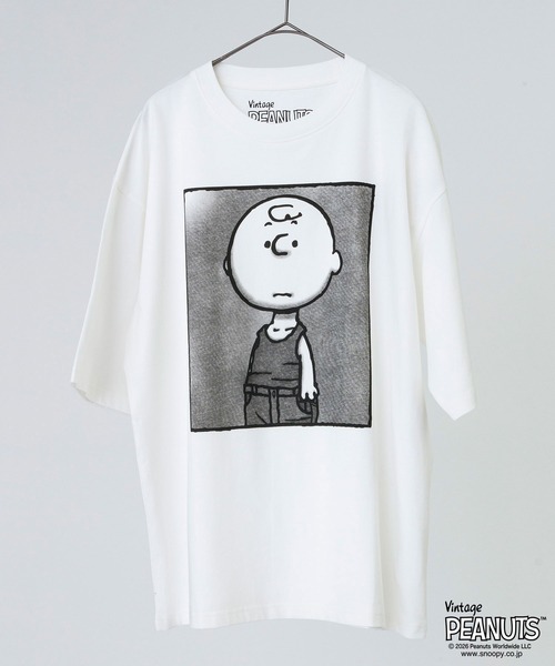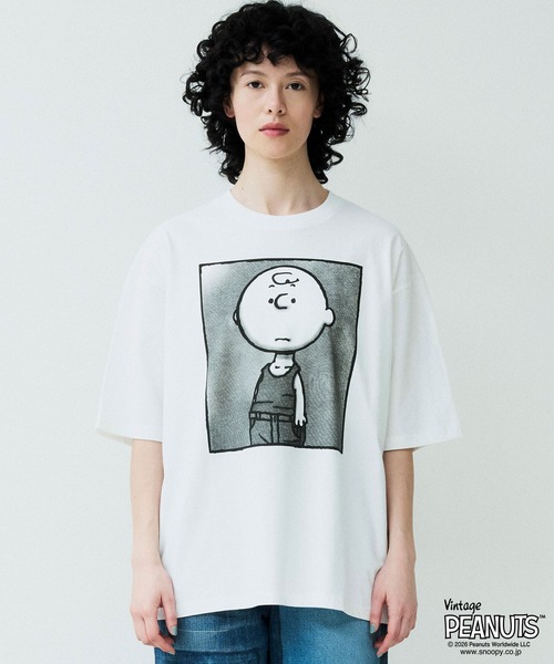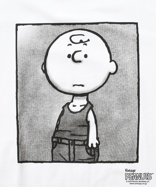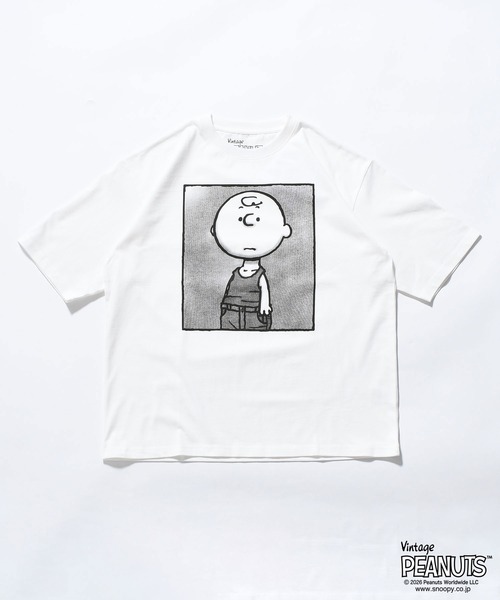 ヴィンテージアートなチャーリー・ブラウンがプリントされた、シンプルな中にもアクセントのあるデザインで、デニムアイテムにも好相性のアイテムです。