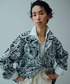 デニム素材に、いくつもの版を駆使しながら濃度の異なる抜染で染料を抜いて色の陰影を表現。