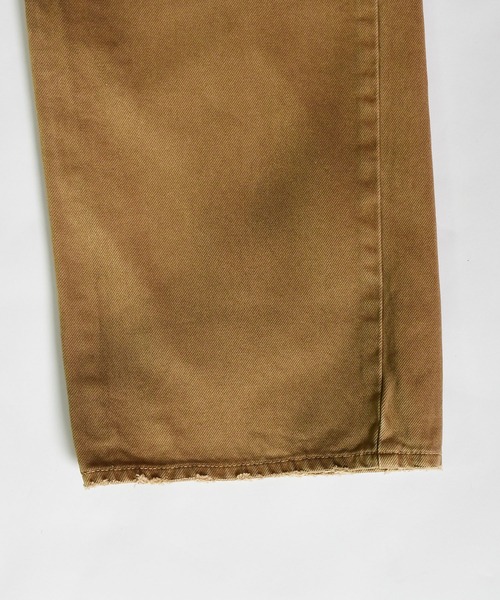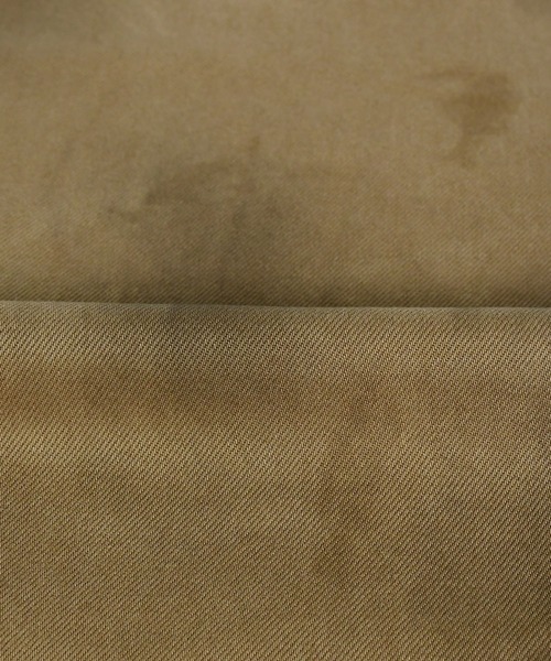 ホワイトカツラギを製品染めし、さらにダメージやエイジング加工を施して洗いこむことで、ワークウェアのようなヴィンテージな雰囲気に仕上げております。