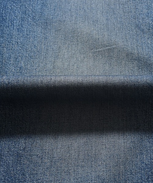 9オンスのライトデニム生地は、緯糸に細番手の糸を使用している為、軽量感があり柔らかく穿きやすいのが特徴です。