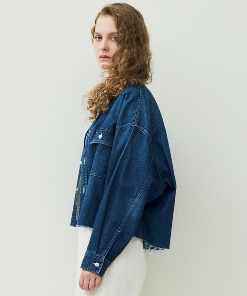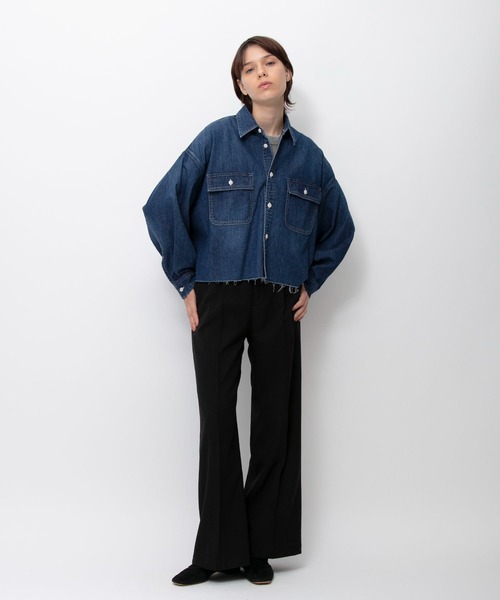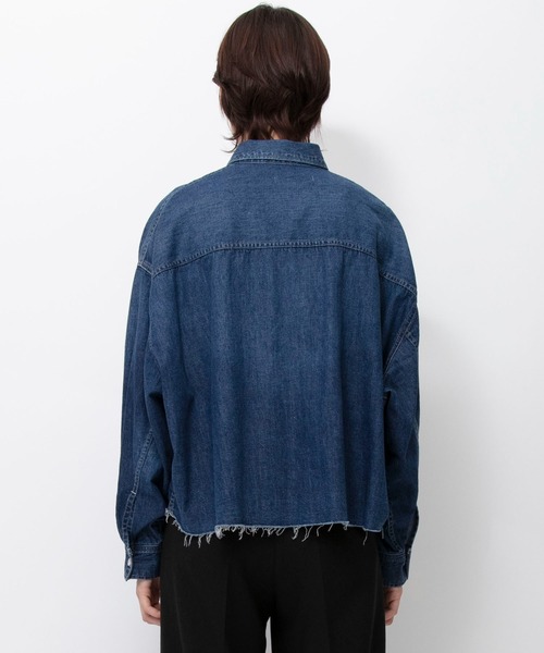 身幅はワイド、着丈はコンパクトなボックスシルエットで、切りっぱなしの裾がアクセントになったデザインです。