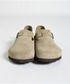 シンプルなシームレスデザインのシューズで、裁ち端の風合いを生かしたスエードレザー本来のナチュラルな風合いが特徴です。