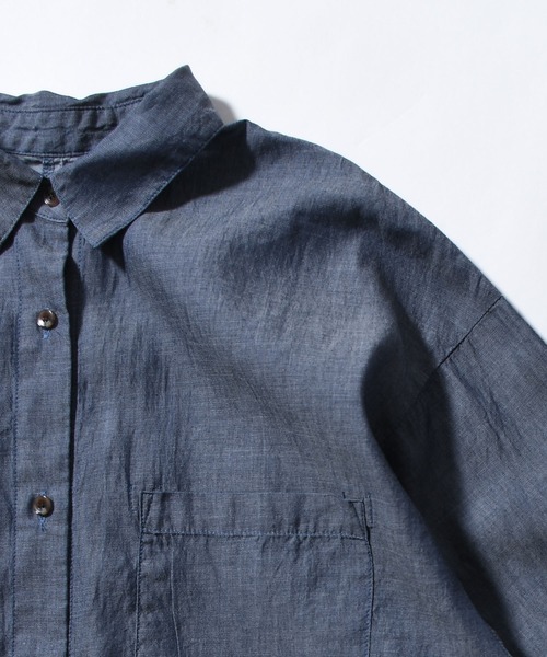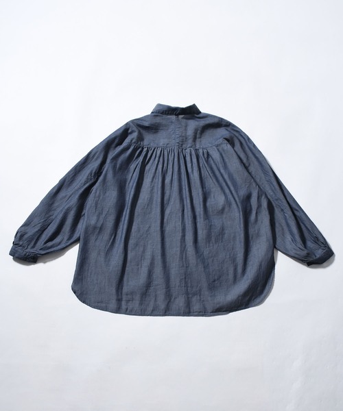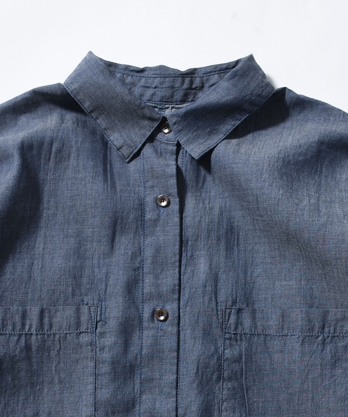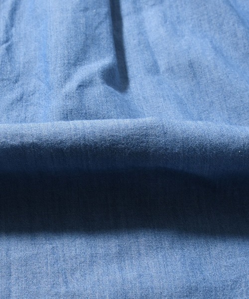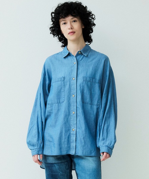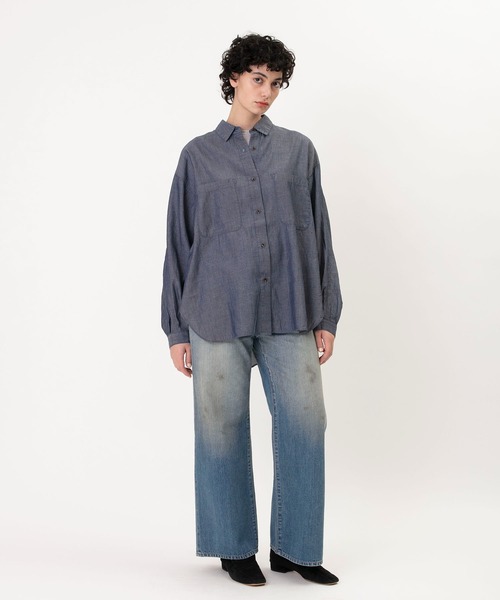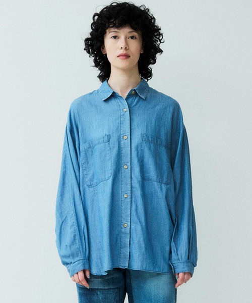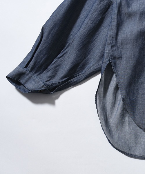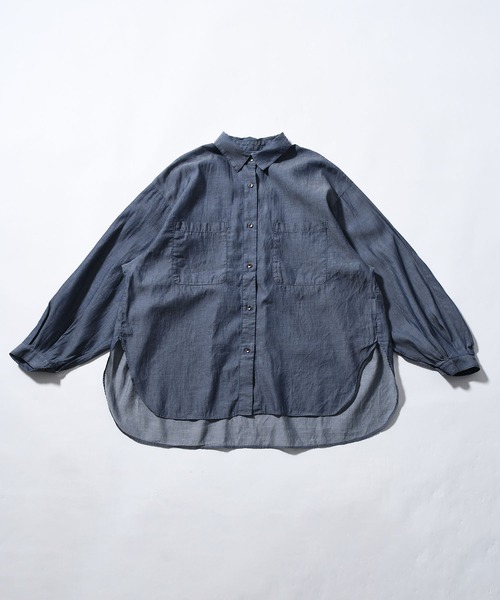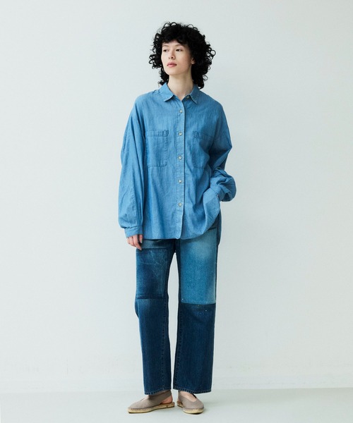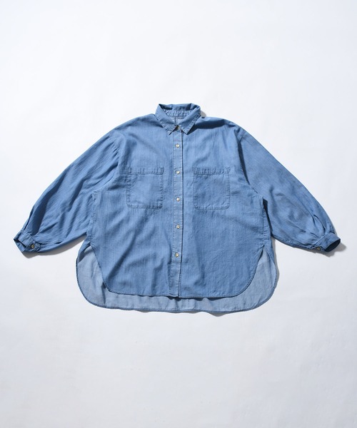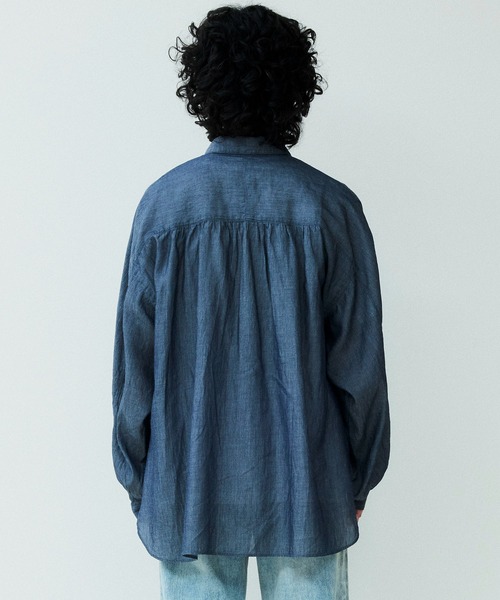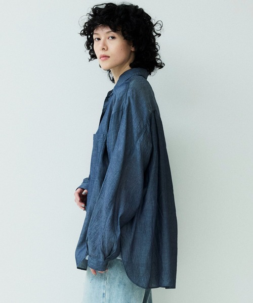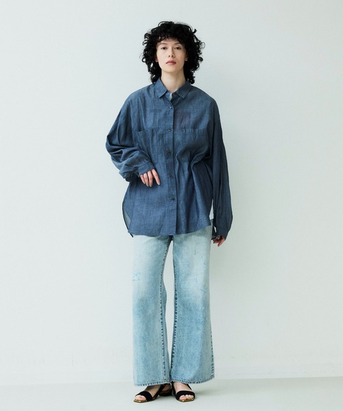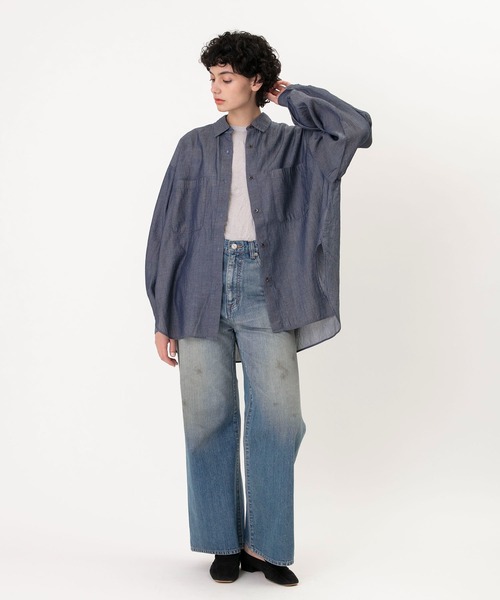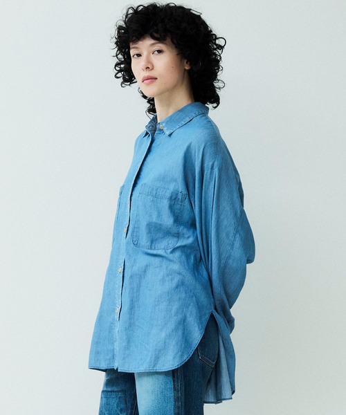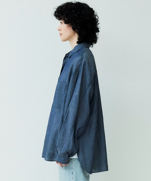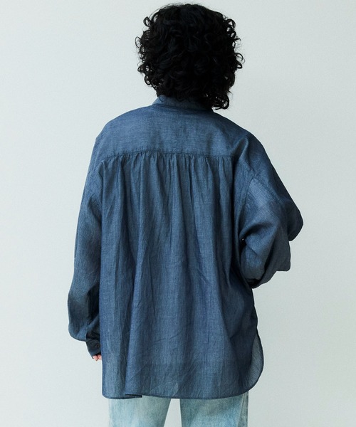 透け感のあるデニムを使用したオーバーシルエットのシャツ。