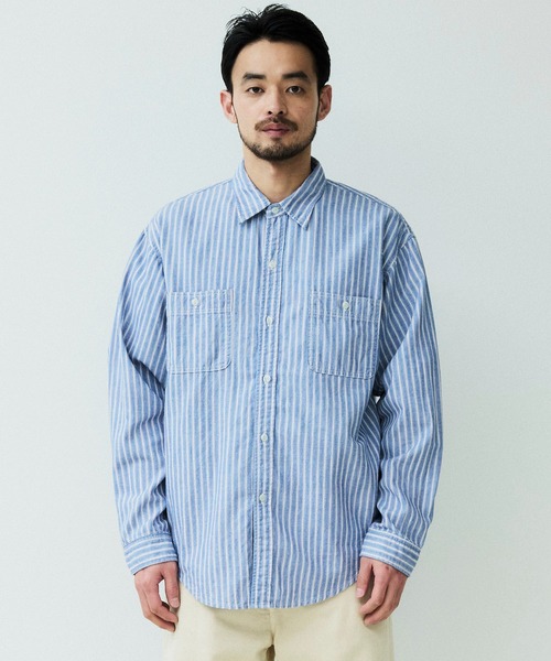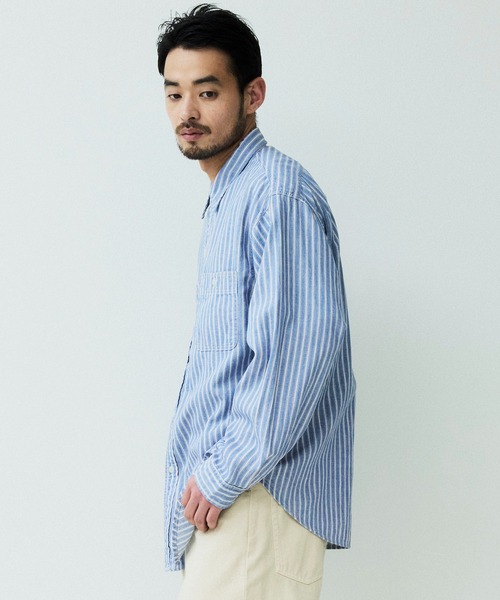 【DENIM DELIGHT DAYS】シャンブレーピンストライプロングスリーブワークシャツ