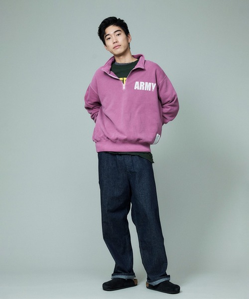 ヴィンテージのARMYプリントを再現したハーフZIPスウェット。