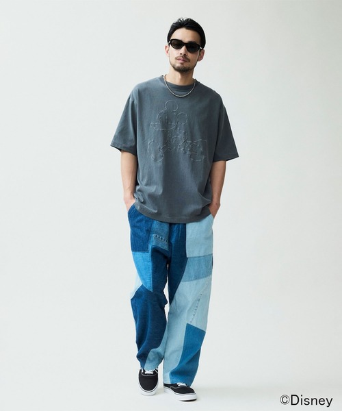 クラシカルなタッチのMICKEYをラフなタッチで刺繍し、ライトベージュとチャコールグレーはさらに製品染めにより、古着のようなヴィンテージライクな雰囲気に仕上げています。