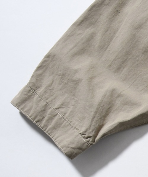適度な光沢感とリネンのナチュラル感を併せ持つコットン混素材を使用し、本来防寒用として重厚感のあるコートを軽らかに、