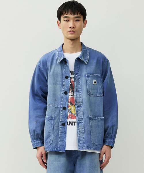 春:セットアップで、フレンチワークスタイルを楽しんで。程よく色落ちしたカラーリングのため、軽やかさと季節感を演出できます。インナーにはジョンブルのアーティストTシャツを合わせ、グラフィックで遊び心をプラス。