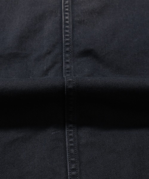 ユニセックスで着用しやすいように、フレンチワークに代表されるモールスキンではなく、軽くて丈夫な約10オンス位のチノ素材を使用しています。