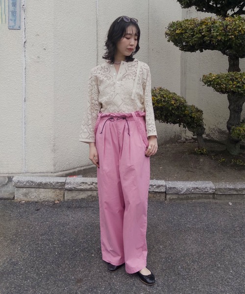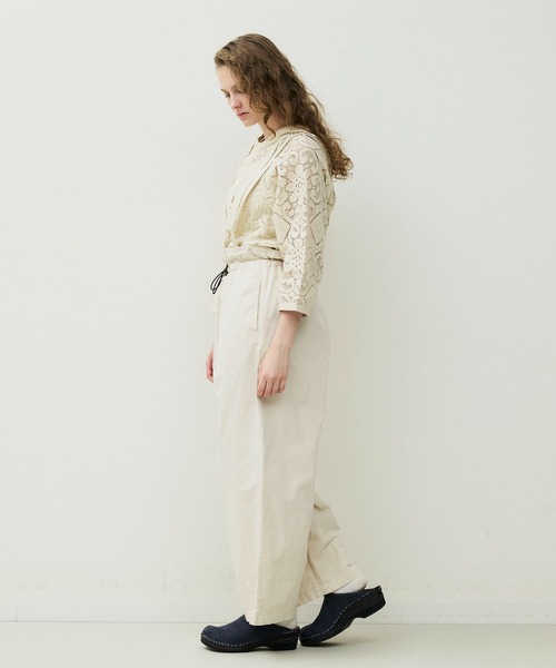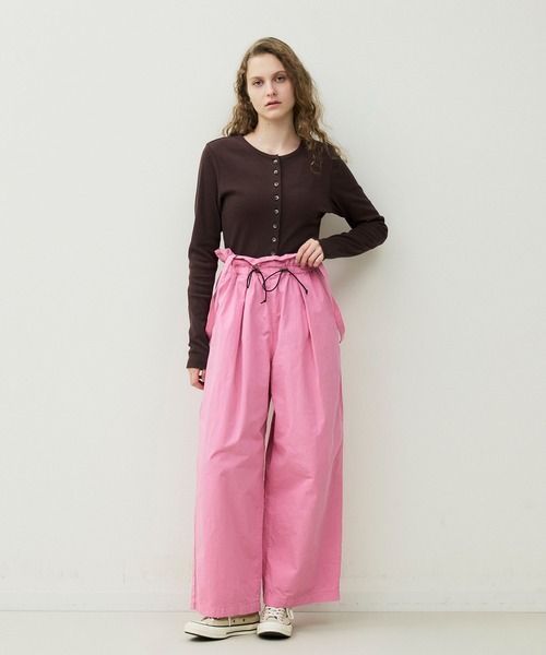 ウエストゴムデザインで穿きやすく、ウエストに通したコードでサイズも調整可能です。