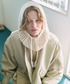 ボリューム感あるバルキーアクリル・コットン糸を使用し、ローゲージでざっくりと透かし柄&ポンポンを組み合わせて編んでいます。