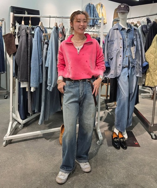 ヴィンテージな雰囲気に加工を施したハーフZIPスウェット。