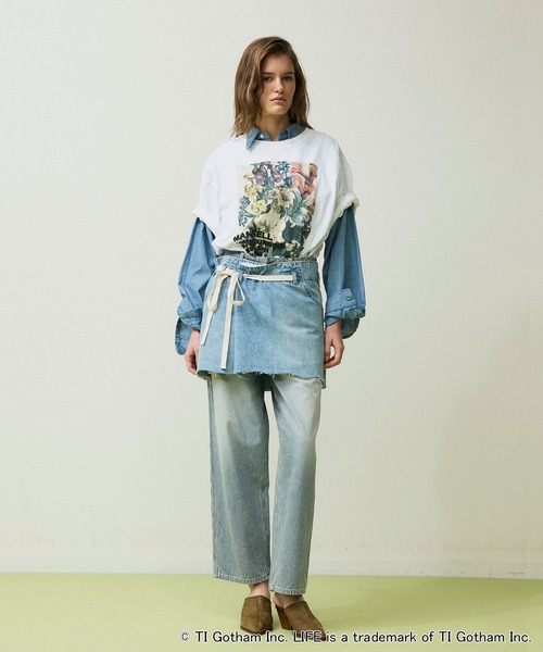 デニムパンツやスラックスにレイヤードして、いつものスタイルにアクセントと動きをプラスしてくれる他にはないアイテムです。