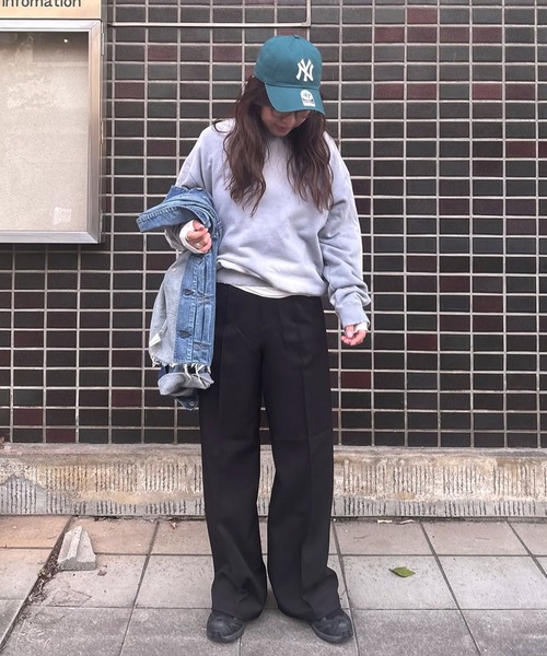 ピンタックのセンターラインがポイントのワイドスラックス。