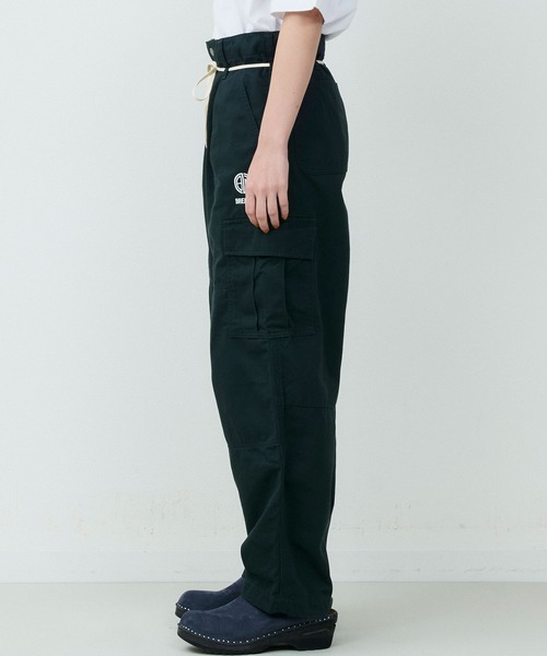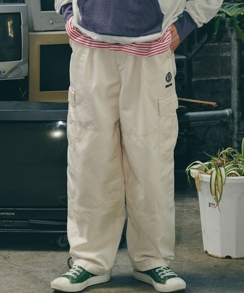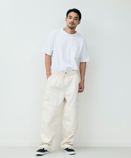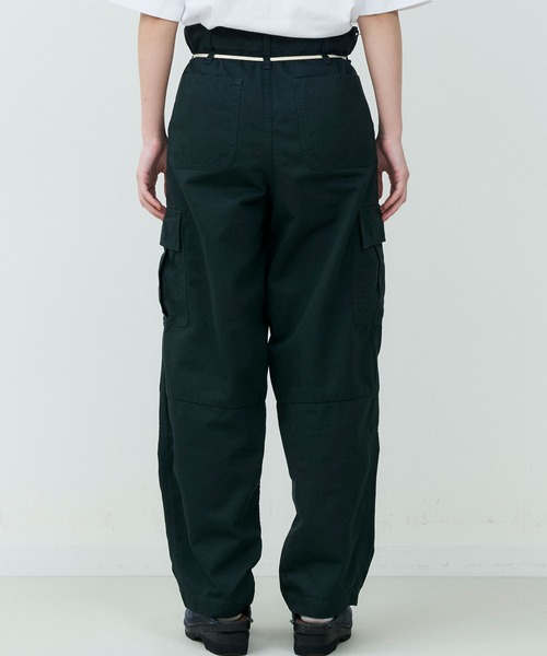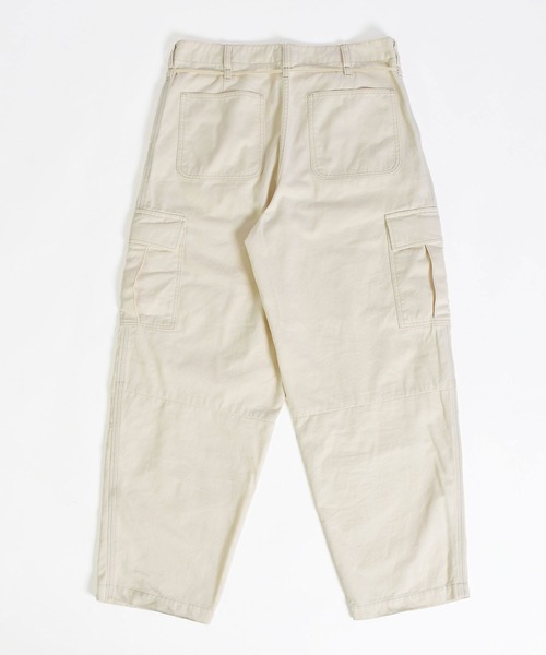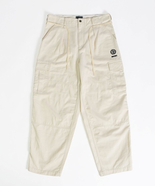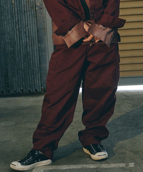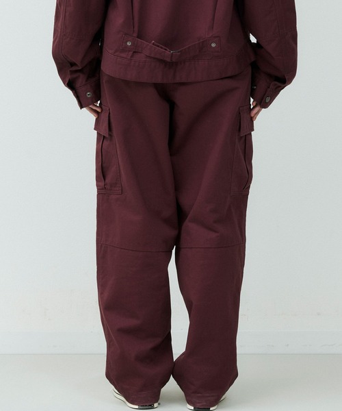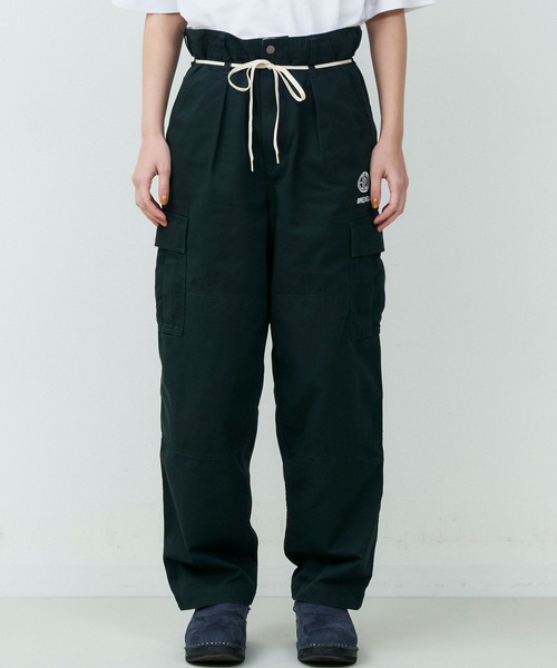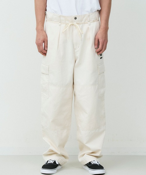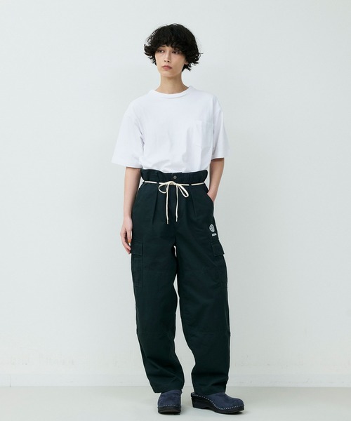 カーゴパンツをベースに、ゆとりを持たせつつ裾にかけてテーパードを効かせたシルエットは、立体的なフォルムでワイドながらもすっきりとした印象に仕上げています。