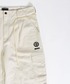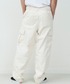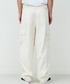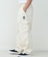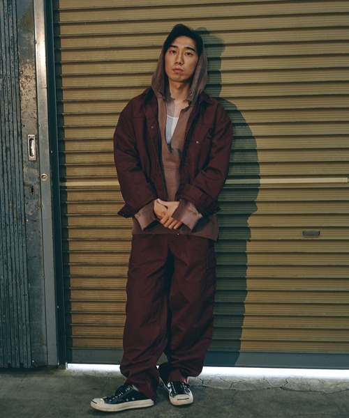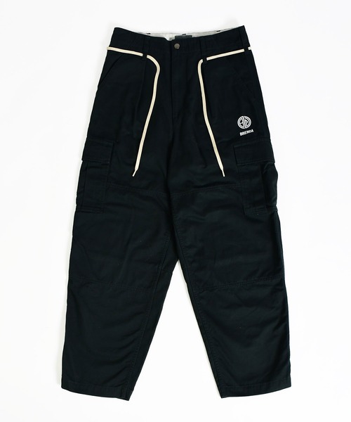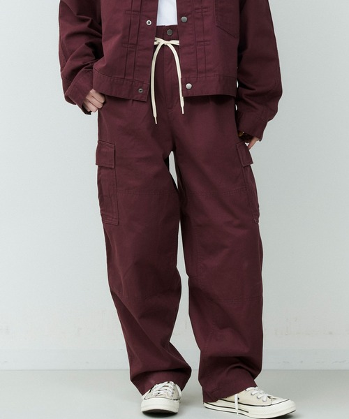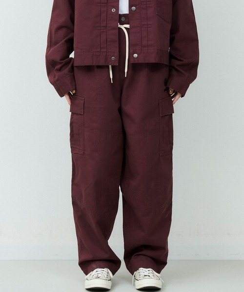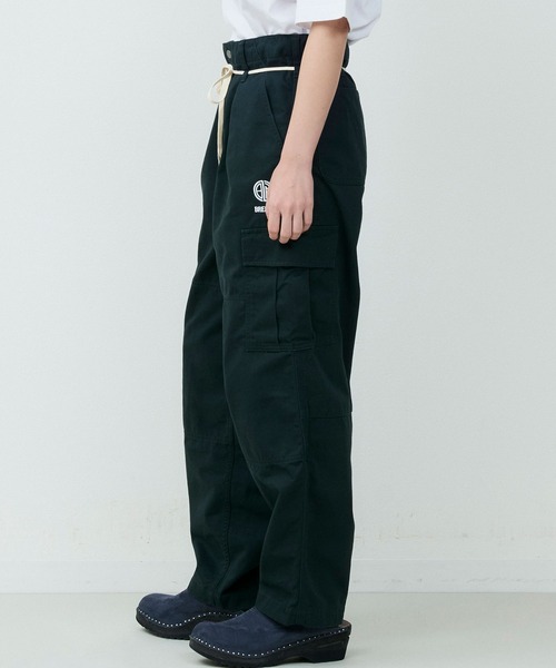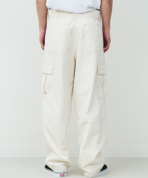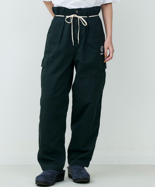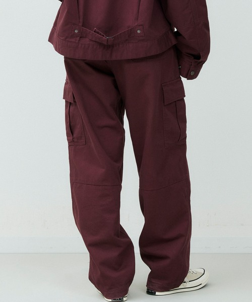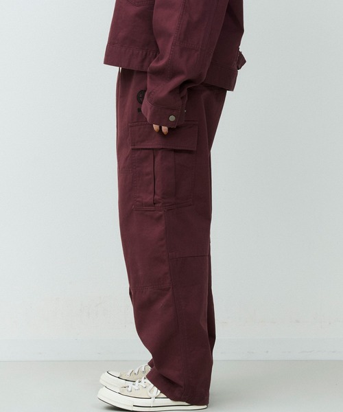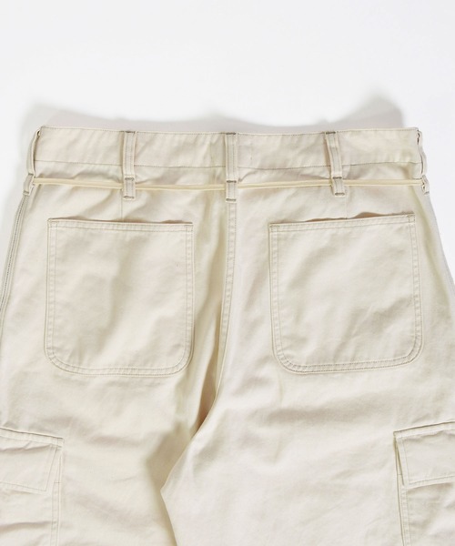 カーゴパンツをベースに、ゆとりを持たせつつ裾にかけてテーパードを効かせたシルエットは、立体的なフォルムでワイドながらもすっきりとした印象に仕上げています。