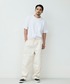 チノ素材を使用したワンウォッシュ仕上げのワイドパンツ。