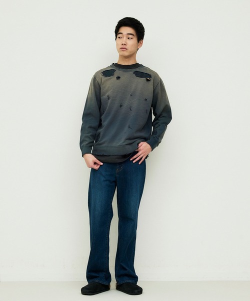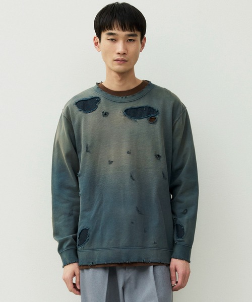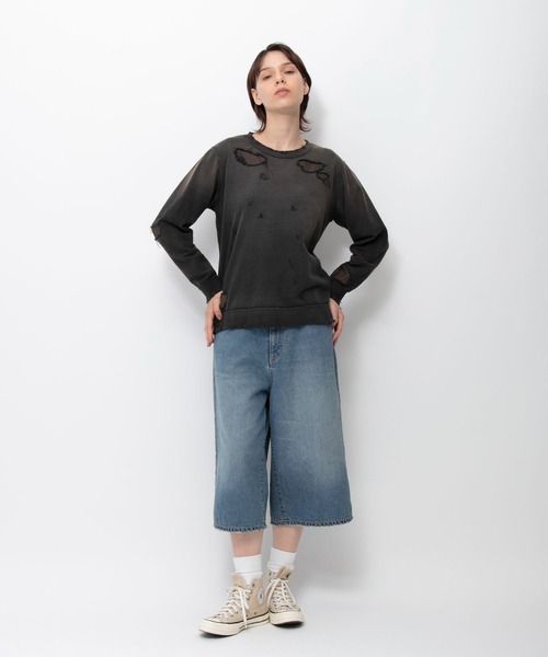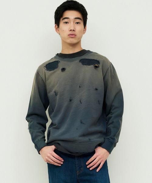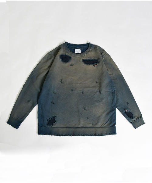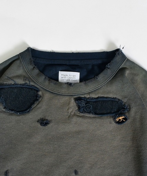 【DENIM DELIGHT DAYS】ダメージリメイククルーネックスウェット