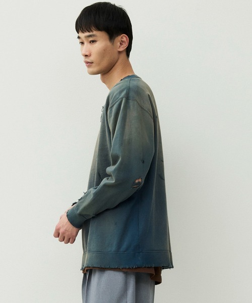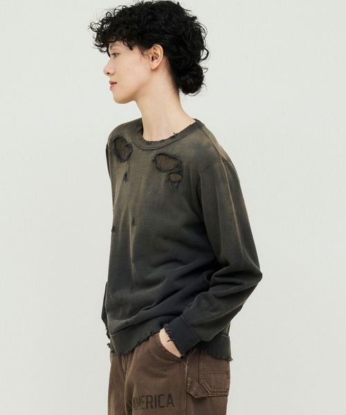 加工感にこだわったヴィンテージなクルーネックスウェット。
