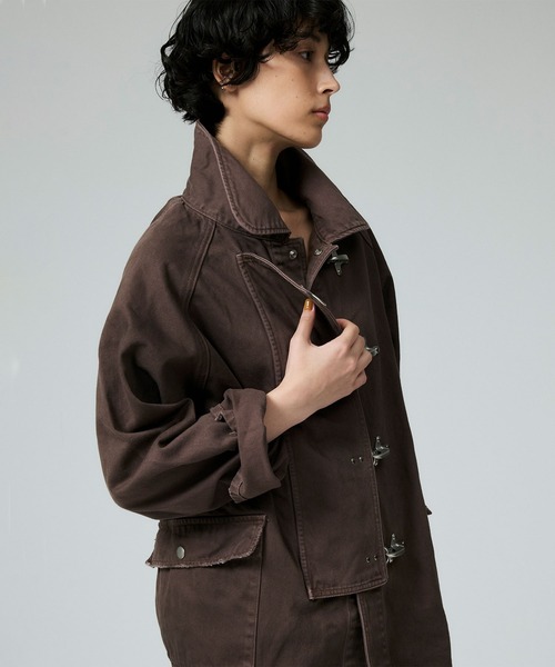 比翼のような前立てのトグル使いのデザインは、コーディネートのアクセントになります。