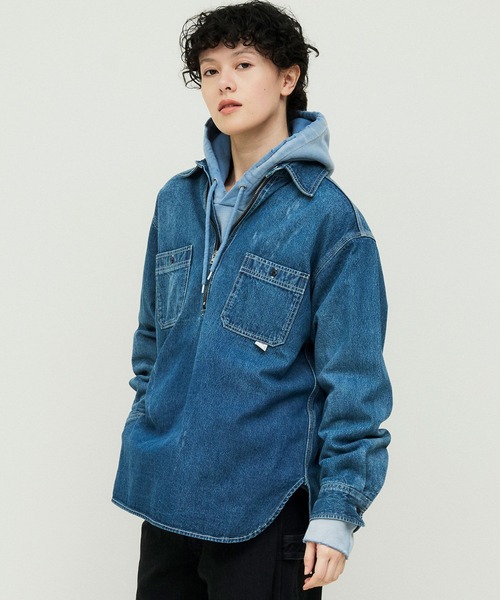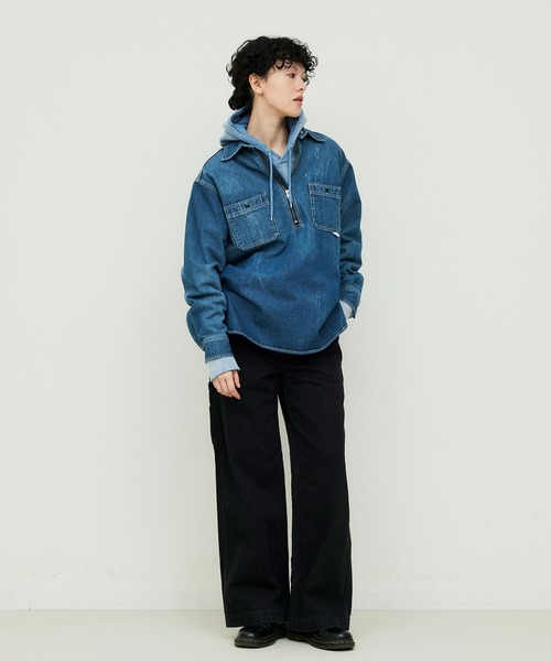 ・女性が着用した場合、適度なオーバー感でボーイズデニムのような華奢感のでるシルエットです