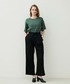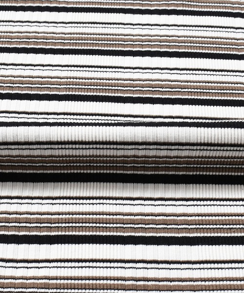 衿ぐりの配色の太めのリブ使いが、顔周りを引き締める効果がありさらっと着るだけでも決まるアイテムです。