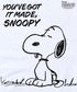 ”You've got it made,SNOOPY”- - - ”なにもかもうまくいくよ、スヌーピー”という意味のフレーズと、スヌーピーのなんともいえない表情がポイントのアイテムです。