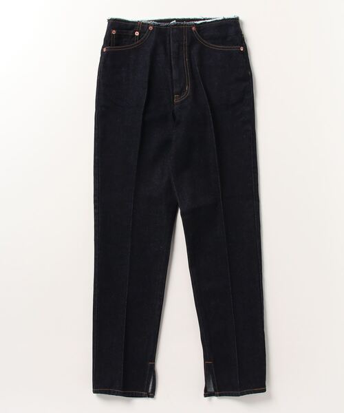 12オンスのムラ糸デニムを使用したテーパードジーンズ。
