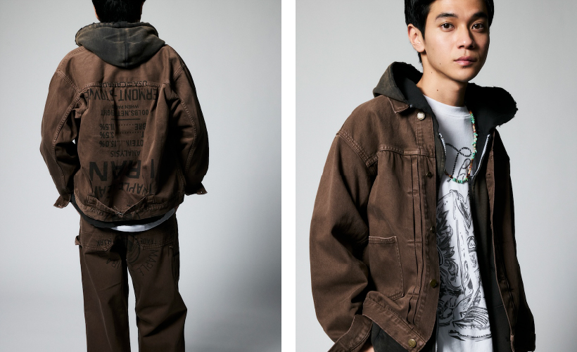ジャケット・パンツ共にバックサイドにインパクトあるプリントを施し、ストーンウォッシュを加えヴィンテージの擦れた雰囲気を再現しています。