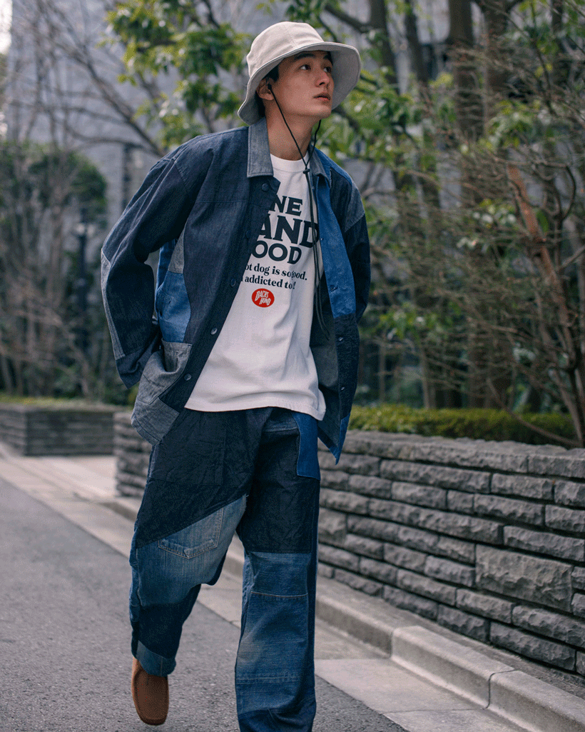 クラフト感のあるパッチワークデニムシリーズをセットアップで。同じ物が一つとないアイテムなので、セットアップでも完全にオンリーワン。ぜひお気に入りの組み合わせを見つけてください。