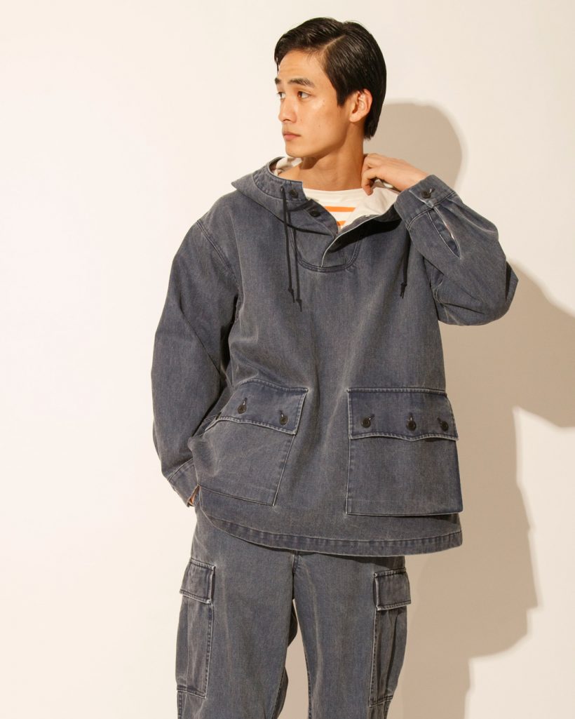 JACKET lot.JM231L04_844 / ¥30,800 tax in >>BUYハードな加工、ルーズなシルエット、ミリタリーのディテールが存分に施されたアイテムを潔くセットアップで。ワークなスタイルにあえて明るいインナーカラーをちらりと見せてひと癖プラス。 |