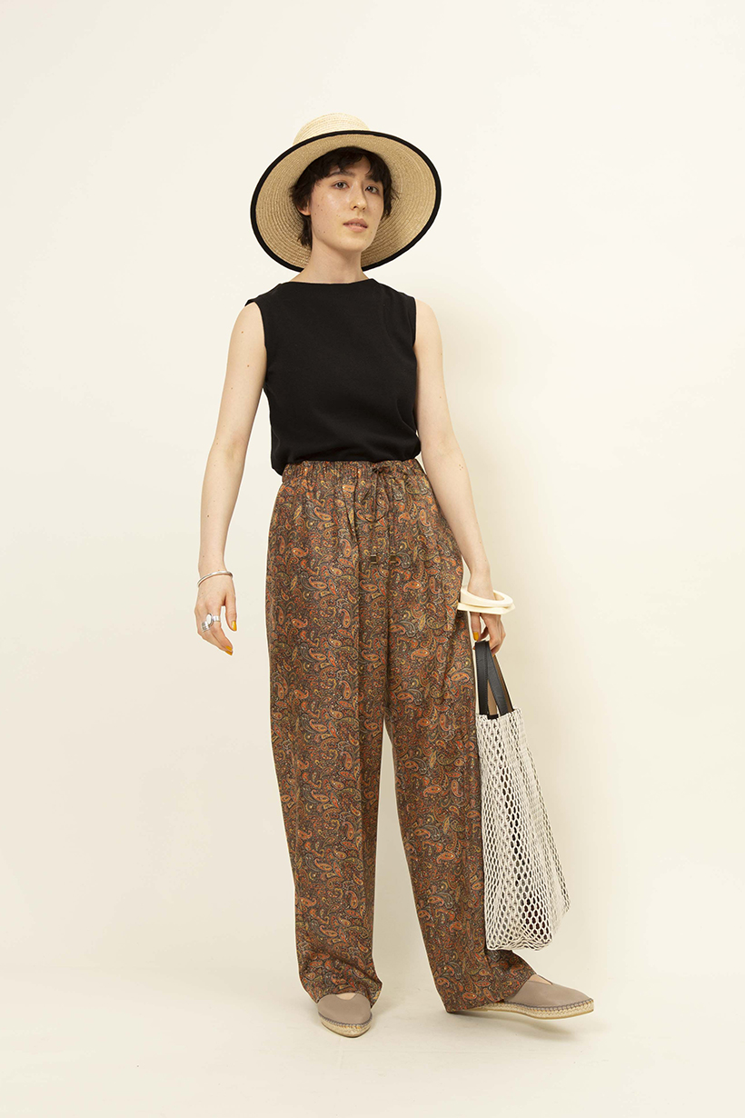 イタリアや日本の生地屋が持つアーカイブテキスタイルから、夏に穿いてほしい柄をピックアップしてして作られたパターンイージーパンツ。ウエストはゴムになっているのでリラックス感のある穿き心地で、レーヨンのさらっとした生地感は肌あたりが良く暑い夏にぴったり。すらっと足をきれいに見せてくれるセンタープレスが入っているので、イージー過ぎない上品さを持ち合わせています。選ぶのが楽しくなってしまう5柄13色のパターンイージーパンツは、合わせるトップスによって様々なスタイリングを楽しめます。おうち時間にもお出かけにも使える万能アイテムですのでぜひチェックしてみてください。