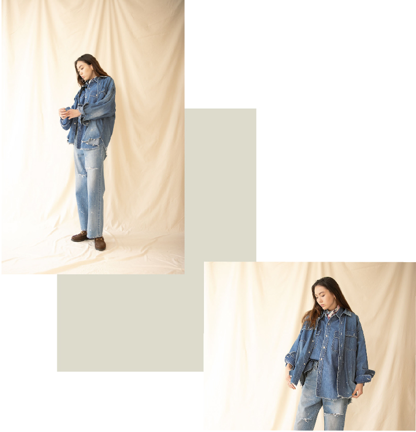 デニムを主役としたヴィンテージライクなレイヤードスタイリングをぜひご覧くださいませ。