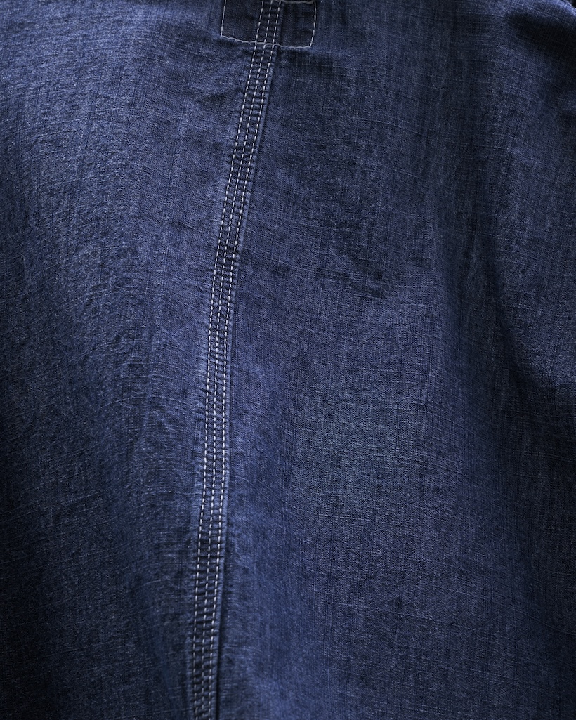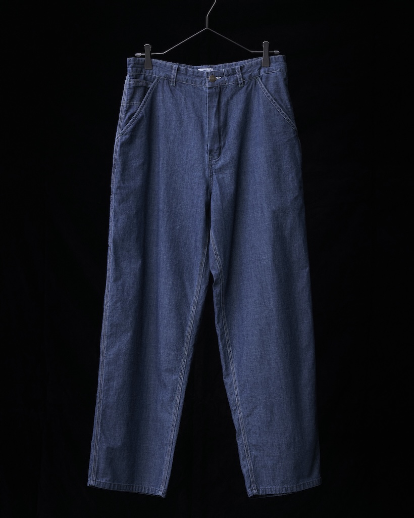 2026SPRING SUMMER COLLECTIONよりインディゴダンガリー生地で仕上げた新作が登場。通常のデニム生地よりも軽量で柔らかく、気温が上がってくるこれから季節にデニムよりもライトな感覚でデニムのようにスタイリングをお楽しみいただけます。ヴィンテージのワークウェアに見られるハードな色落ちや加工は施さず、ストーンウォッシュのみで生地の風合いを活かした自然な仕上がりにしています。世代や性別などの垣根を越えて誰にでも手に取っていただける今シーズン注目のシリーズです。