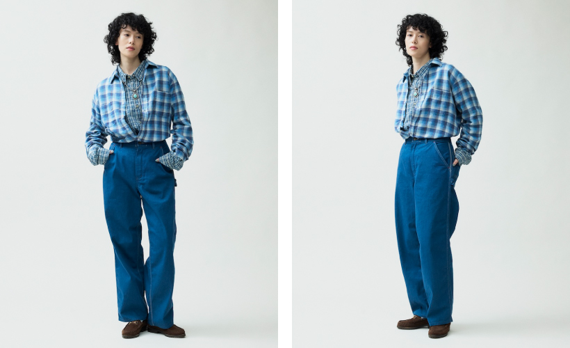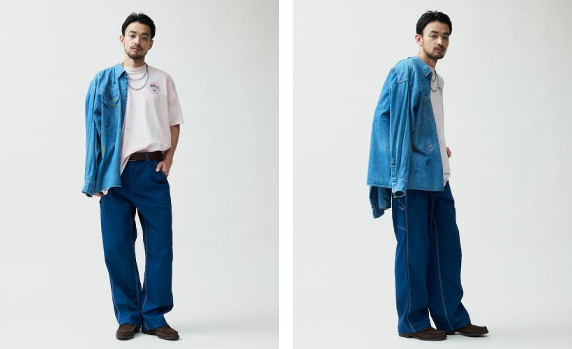 少し緑味のあるグリーンブルーは、普通のインディゴにはない色味が一番の特徴。定番のデニム合わせでもニュアンスが出せるので、デニムスタイルの幅が広がります。