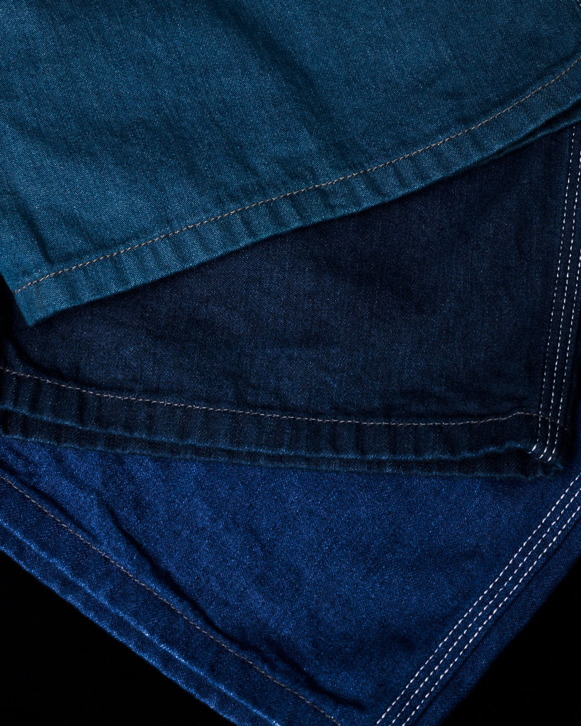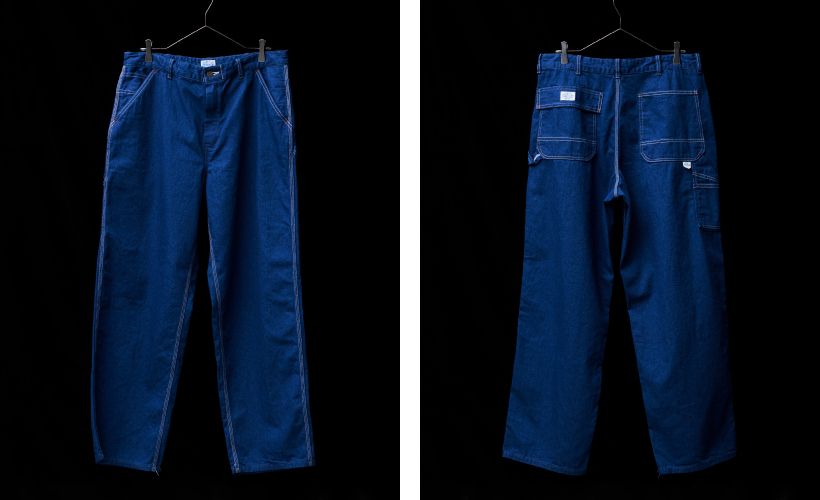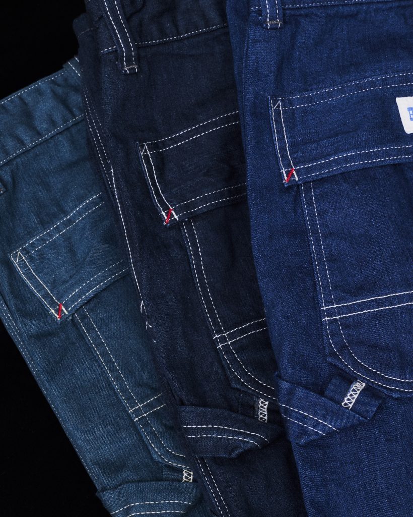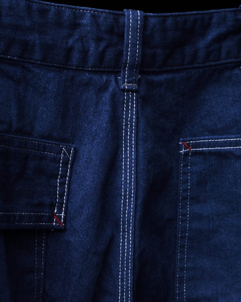 今回の限定モデルは、ヘラクレスの定番としてリリースしているワークパンツより色目の異なるブルーを3色発売いたします。経糸にインディゴ、緯糸にTOP糸を使用し、深みのあるブルーデニムになっています。インディゴに硫化を混ぜることで、通常のインディゴとは違う特徴のあるブルーに仕上がっています。