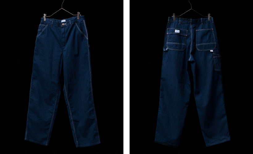 ワークパンツによくみられるディティールは1890年後半頃にゴールドハンターの為にロウソクを入れるポケットを右脇に付けたのが始まりとされており、1960年代のヘラクレス特有のワークパンツにみられるフラップ付きのバックポケットやハンマーループも備えています。バックポケット裏には補強用のあて布を重ねステッチが入っており、そういった細かいこだわりにより洗いや加工によって出てくるアタリも本物のような表情に仕上がっていきます。今回はあえて製品洗いで仕上げる事でヴィンテージ特有の色目を残すように仕上げています。