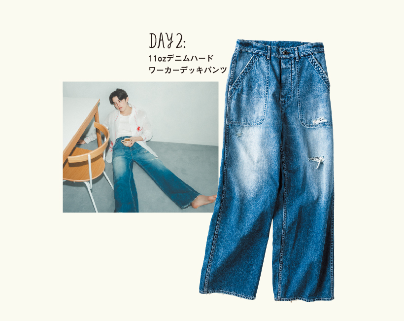 DAY2 : 11ozデニムハードワーカーデッキパンツ