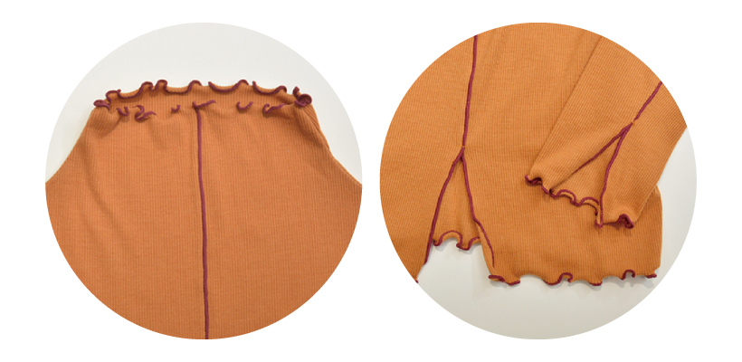 首元と裾、袖にあしらったメロウフリルがキュートなタートルネック。シャツやスウェットのインナーにして、ちらっとメロウフリルを覗かせればさりげないアクセントに。いつものベーシックアイテムをインナー使いでアップデートしたい、そんな時にさらっとインナーに着用してほしい。