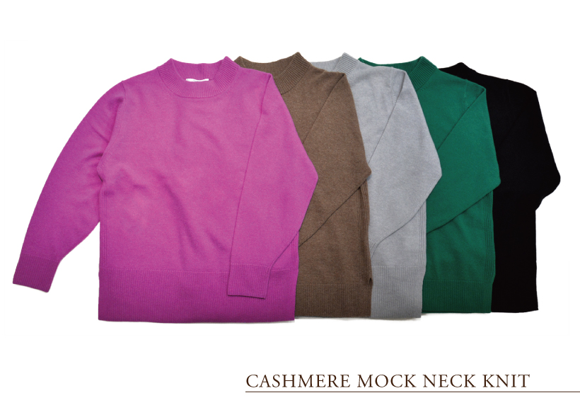 カシミヤ100%の糸を使用して作られた贅沢なモックネックニット。肌触りがよく、非常に軽くて暖かな着心地が何より一番の魅力。申し分ない上質素材だからこそ長くご愛用いただきたい、そんな思いからデザインはあえてスタンダードに仕上げました。