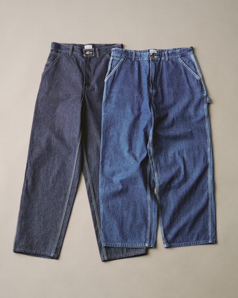 塚田愛用のペインターパンツ、ビフォアフター。左がノンウォッシュ、右が穿きこんだ私物。