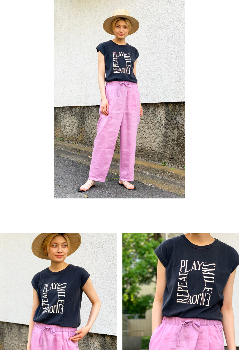 まずロゴデザインが可愛いです。“PLAY・SMILE・ENJOY・REPEAT”と着ているだけでハッピーな気分になれそうなデザインです。