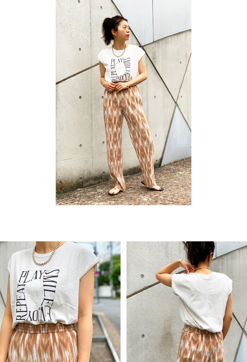 この夏はカラフルな柄パンツや、フレアデニムパンツに合わせたいです。