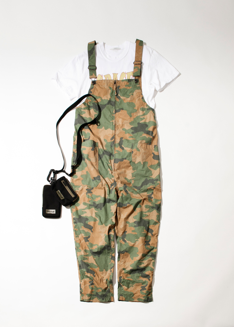 気温の上昇と共に着用する頻度も高くなってくるのがオーバーオール。最新作はミリタリーライクなムードを楽しめるJOHNBULLオリジナルのカモフラージュ柄などがエントリー。ちょっとくらい派手な方がアクティブな季節にはちょうどいい。
